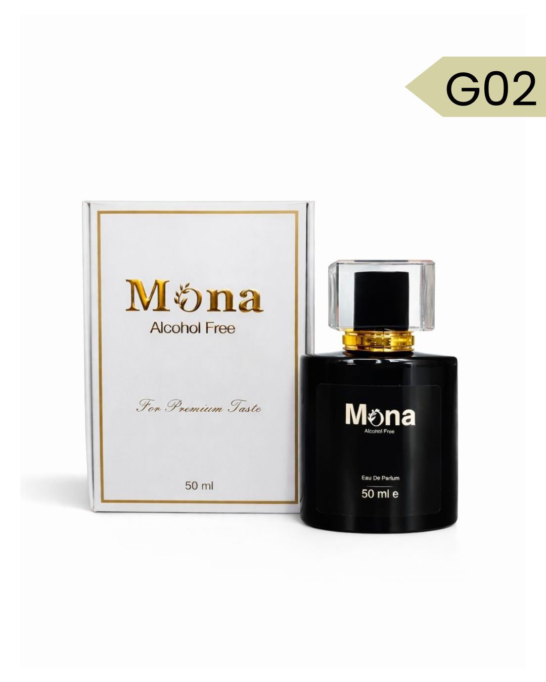 MONA G02; tatlı, çiçeksi ve zarif karakteriyle öne çıkan, güçlü feminenliği temsil eden özel bir parfümdür. Bergamot ve pembe biberin enerjik açılışı ahududu akoruyla birleşerek canlı ve dikkat çekici bir ilk izlenim oluşturur. Orta notalarda yasemin zambağı, portakal çiçeği ve vanilya çiçeği akoru kokuya yumuşak, romantik ve kadınsı bir derinlik kazandırır.